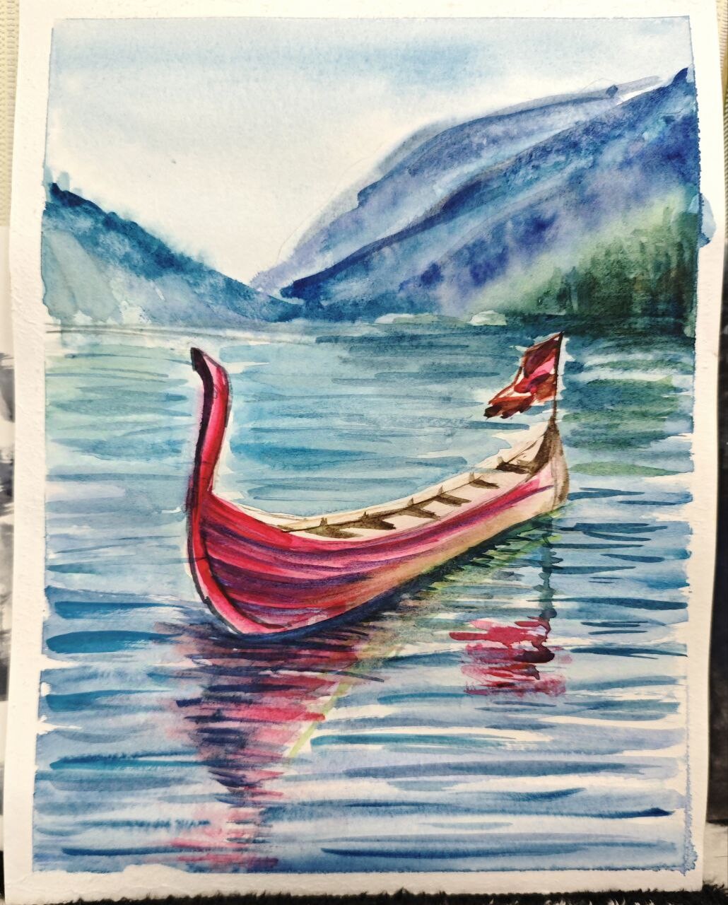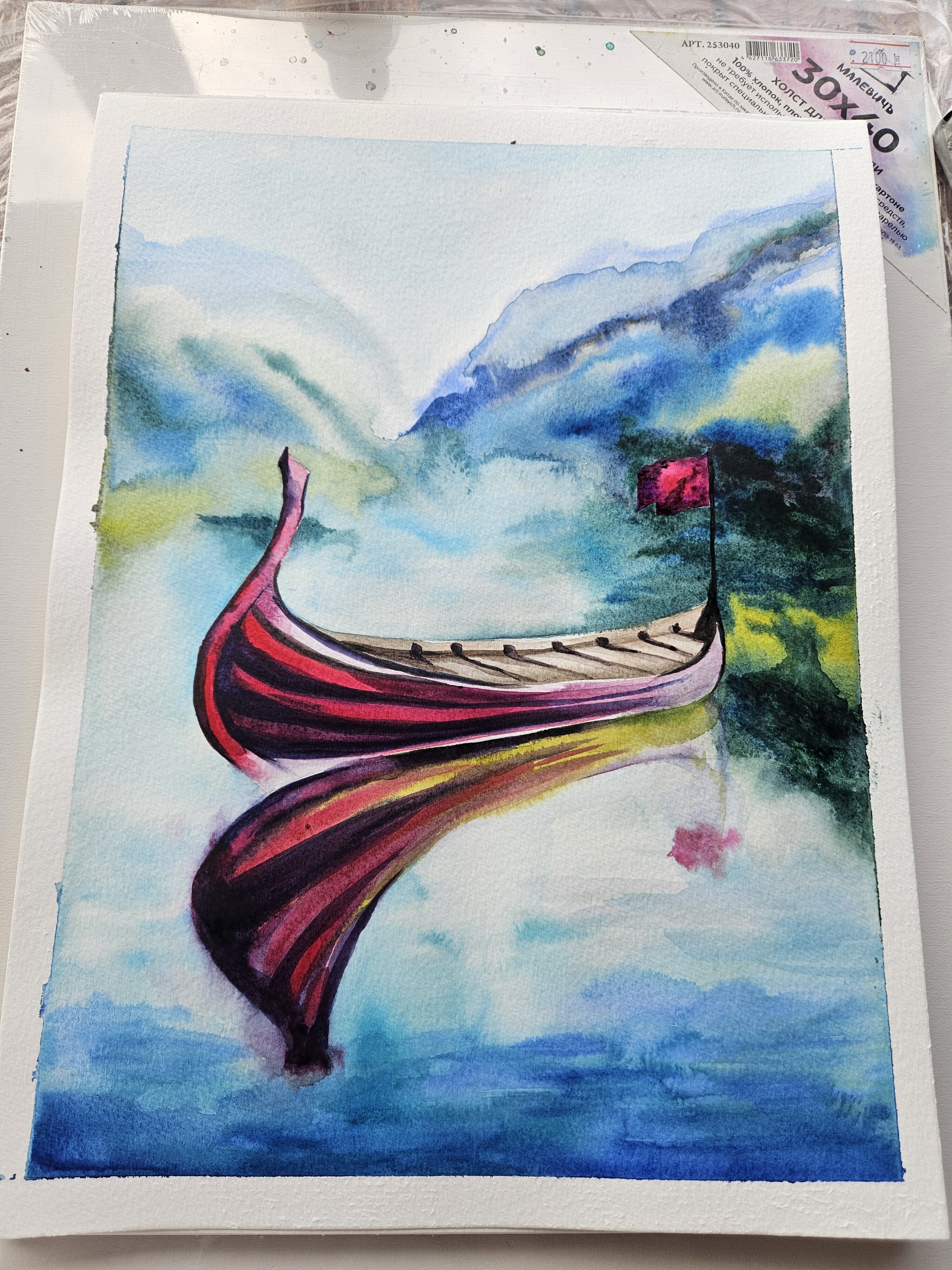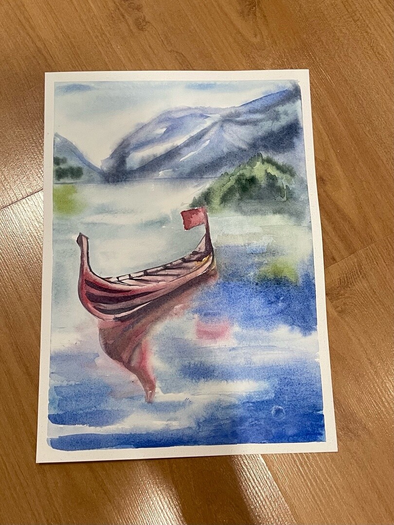 Присоединяйтесь и перенесите на бумагу момент тишины, когда лодочка мягко скользит по морю на фоне величественных гор!